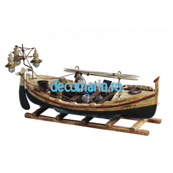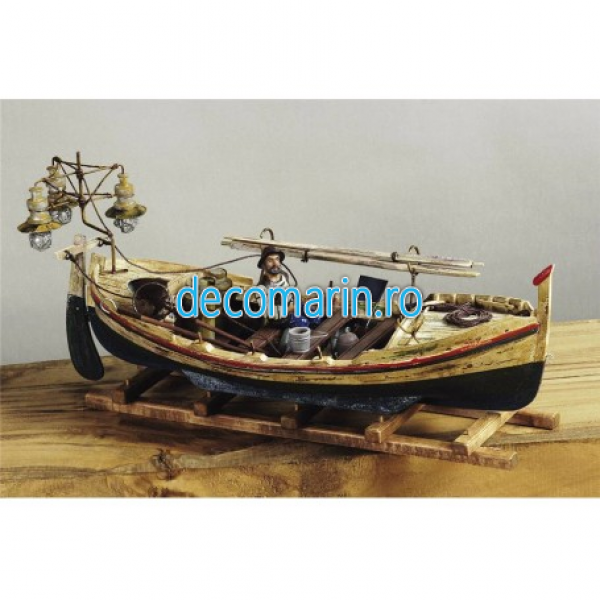 Barca de pescuit mediteraneeana traditionala dotata cu 3 lampi folosita de-a lungul coastei  pe timp de noapte.