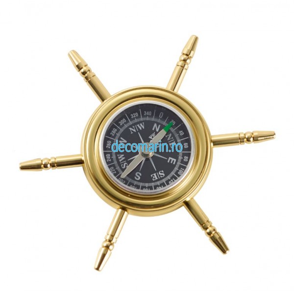 busola din alama antichizata, decor cu roza vanturilor, model cu timona