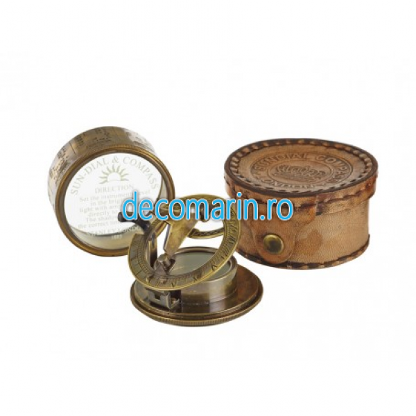 busola cu cadran solar si capac de sticla imprimat, inclusiv husa din piele