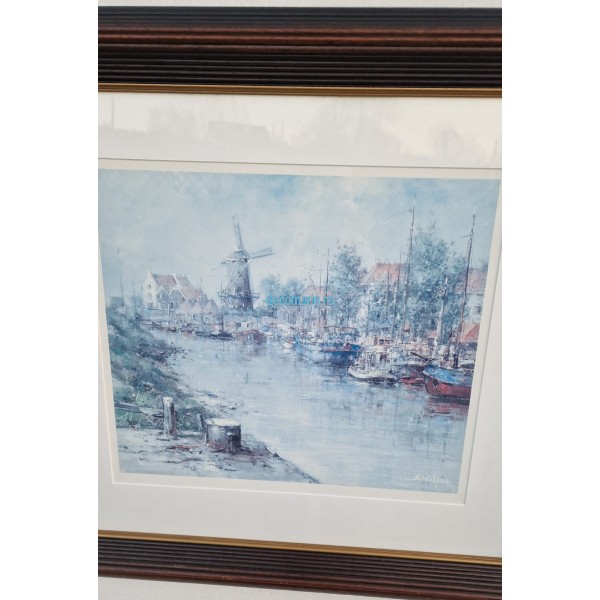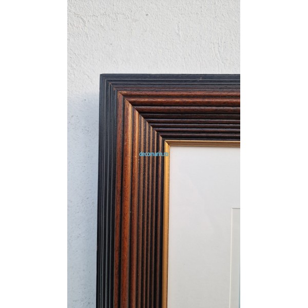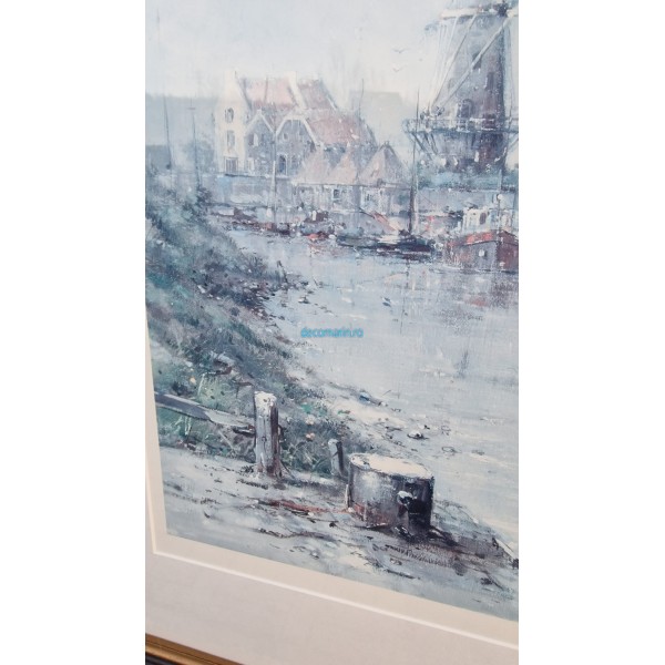 Litografie marina in rama masiva din lemn, obiect de ocazie in stare foarte buna