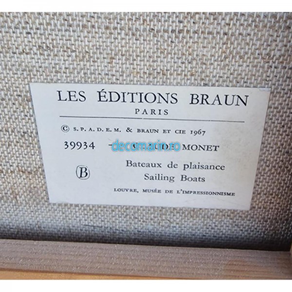 Tablou/print pe panza , copie Claude Monet , realizat de compania de compania Les Editions Braun în 1970.