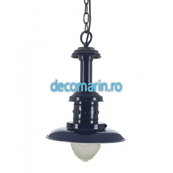 lampa de tavan electrificata cu design marin, suport din otel ,glob din sticla mata imbracat in plasa metalica, lant reglabil din alama