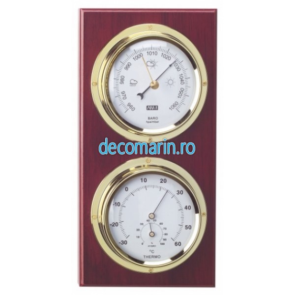 statie meteo de precizie cu barometru,termometru si higrometru pe suport din lemn