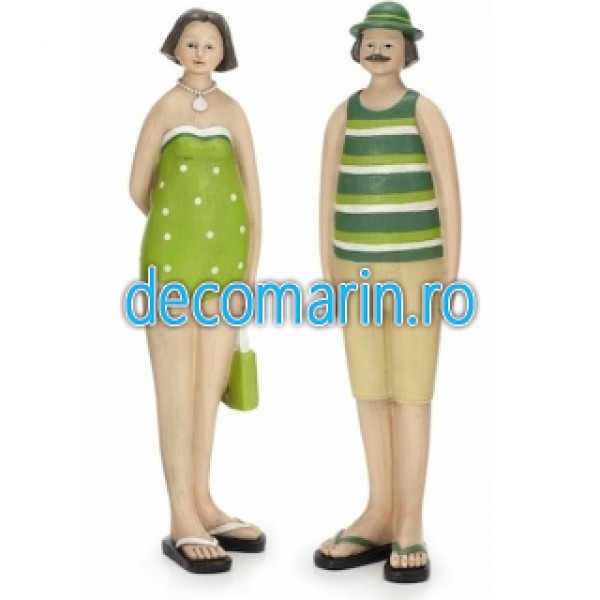 Pereche de înotători din rășină pictați manual în nuanțe pastelate.