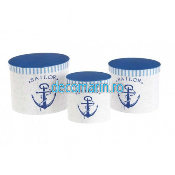 set 3 cutii decorate cu model marin