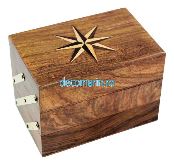 cutie pentru bijuterii cu mecanism de pliere, model cu roza vanturilor