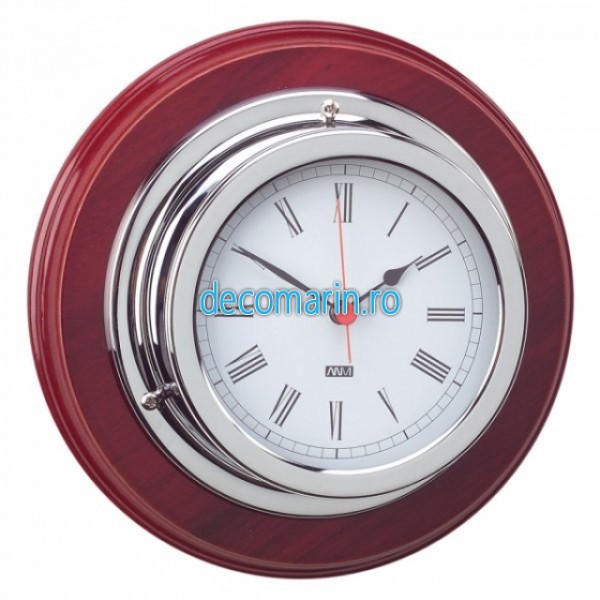 ceas nichelat pe suport din lemn
