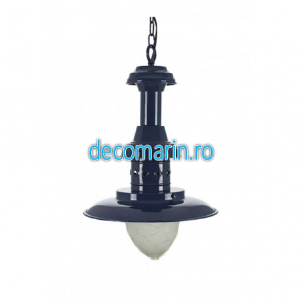 lampa de tavan electrificata, cadru din otel, glob din sticla mata imbracat in plasa metalica, lant reglabil din alama
