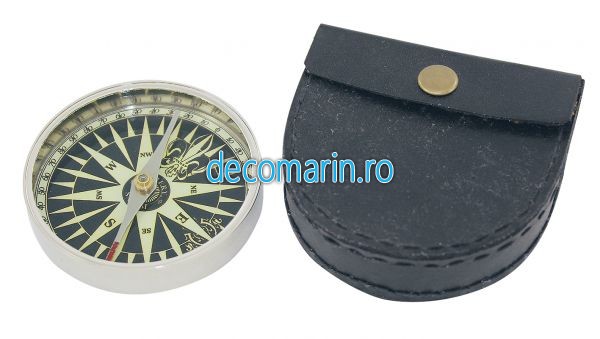 busola din alama nichelata cu port din piele