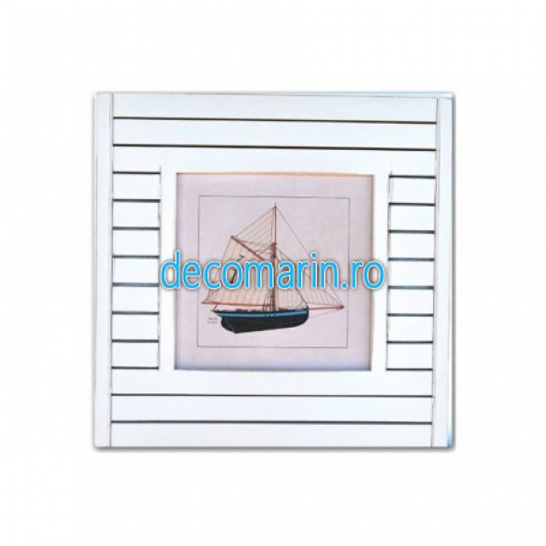 tablou din lemn cu barca de pescuit litografiata
