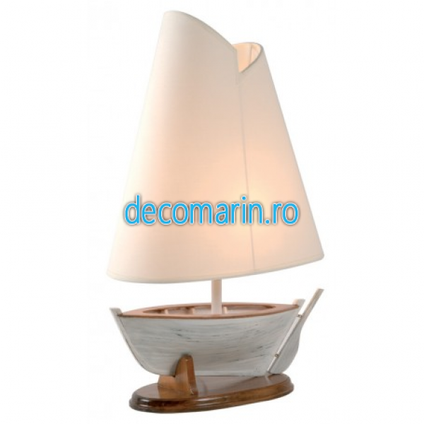 lampa tip barca cu vele din lemn pictat manual,abajur textil