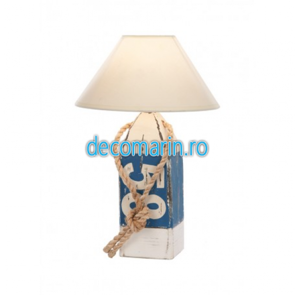 lampa nautica din lemn pictat manual si funie decorativa din canepa