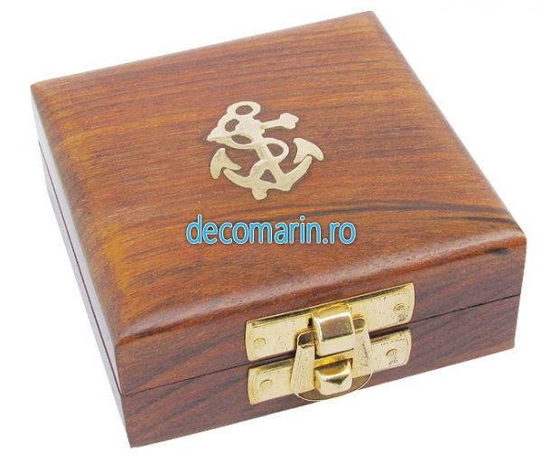 caseta din lemn, capac cu ancora gravata si inchidere/zavor din alama
