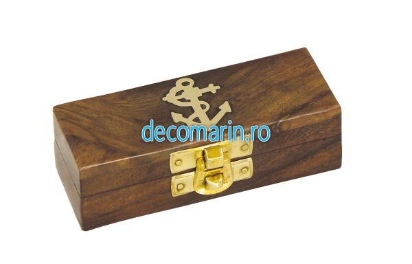 caseta din lemn ,decor cu ancora gravata si inchidere/zavor din alama