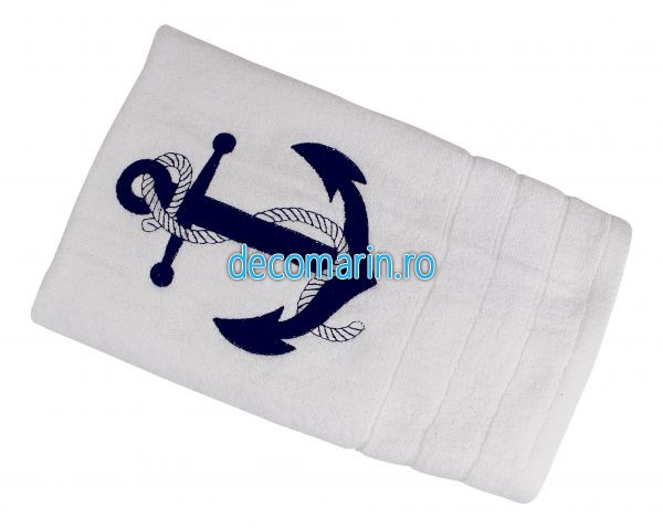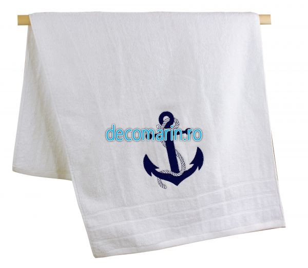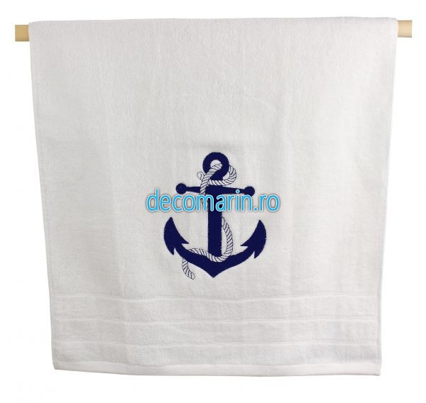 prosop de baie din bumbac ,alb cu decor/ancora, spalare la 40 de grade, densitate 600gsm, absorbant, uscare rapida, calitate premium
