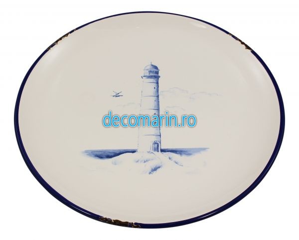 farfurie antichizata cu decor marin, model cu far