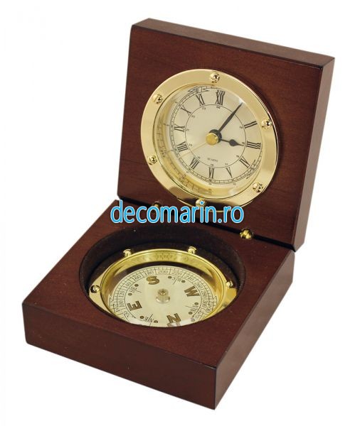 ceas si busola in cutie din lemn
