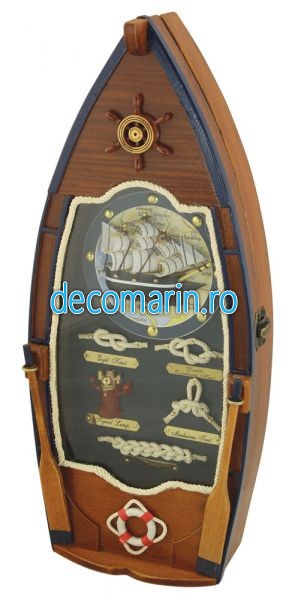 cutie/caseta pentru 4 chei cu tema marina, model barca cu noduri