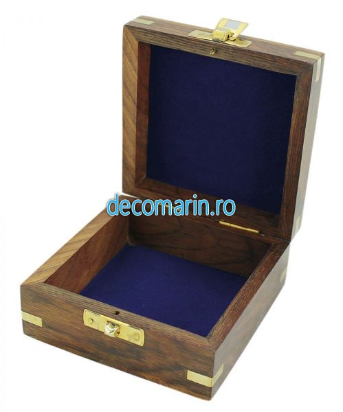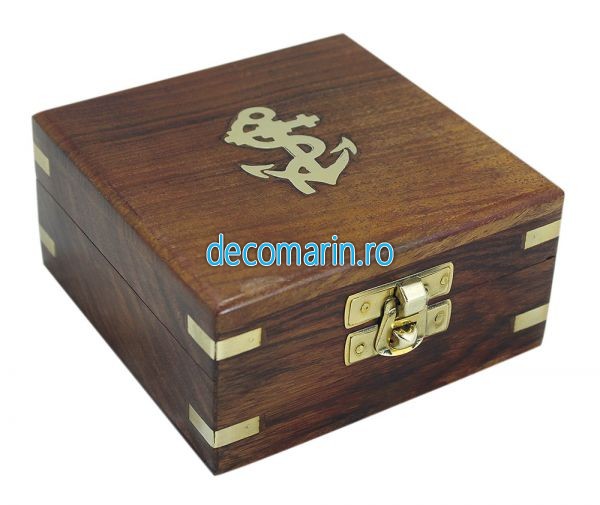 caseta/cutie din lemn , capac gravat cu ancora si inchidere din alama