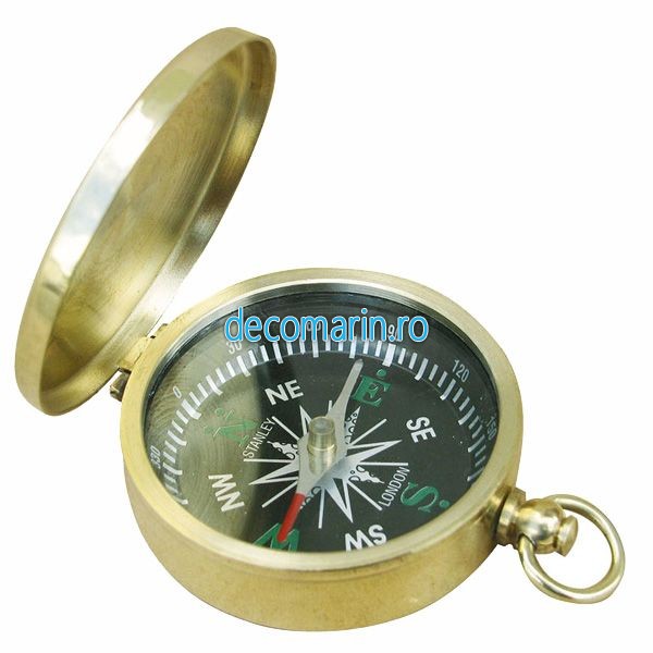 busola din alama cu cadran din sticla, inel de prindere si capac mobil