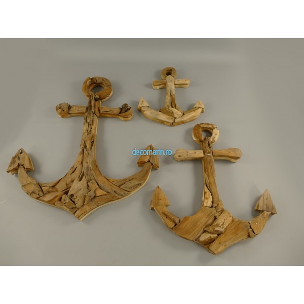 set 3 ancore decorative din lemn de tec
