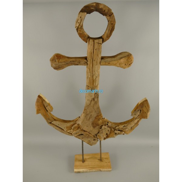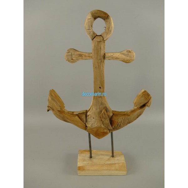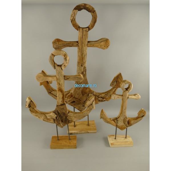 set 3 ancore decorative din lemn de tec pe suport