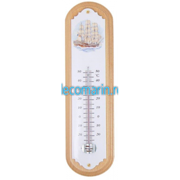 termometru metalic de precizie pe suport din lemn,model cu barca,