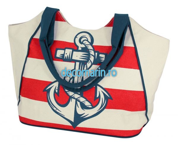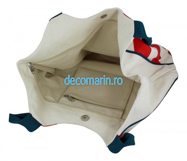 geanta/sacosa cu tema marina, model cu ancora, fermoar si capsa de inchidere inclusiv buzunar interior separat