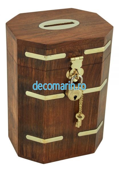 pusculita din lemn si insertii de alama cu lacat si 2 chei
