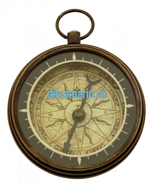 busola din alama antichizata cu inel de prindere si cadran din sticla