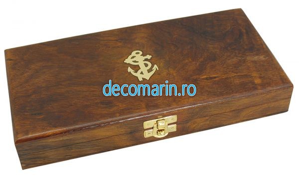 lupa cu maner din lemn/alama in cutie cu capac gravat