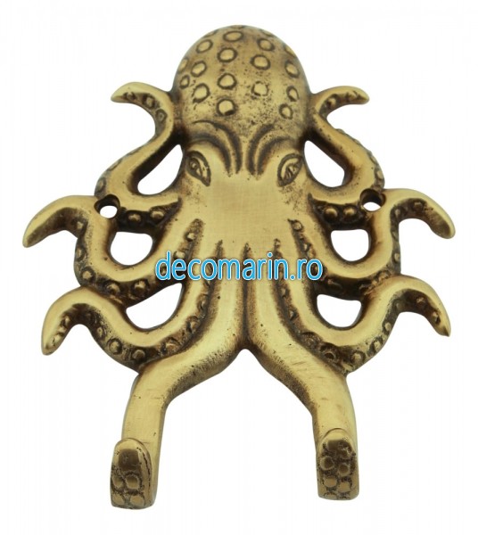 cuier dublu din alama antichizata, model caracatita, fixare pe perete,