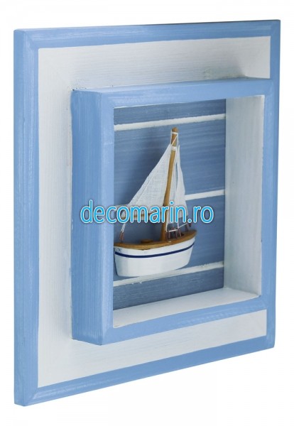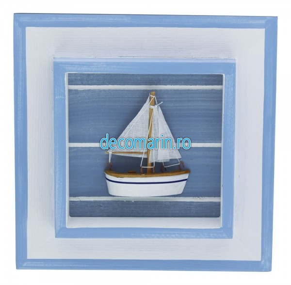 tablou din lemn pictat, model cu barca