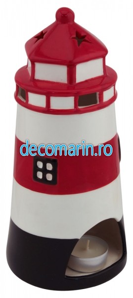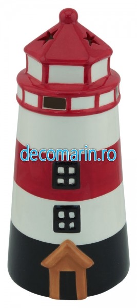 Candela ceramica pictata , model cu far , lumanare pastila inclusa