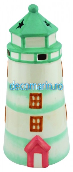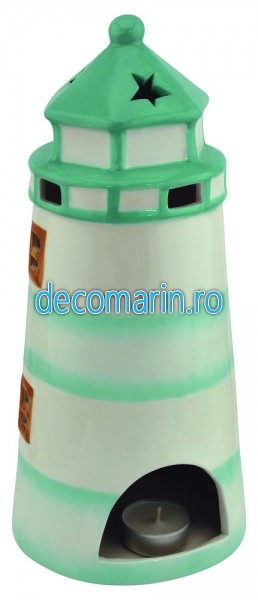 Candela ceramica pictata , model cu far , lumanare pastila inclusa
