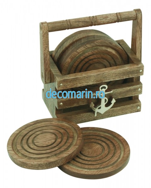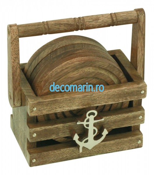 Set 6 bucati , suporturi pentru pahare in cos din lemn de mango cu ancora din alama.
