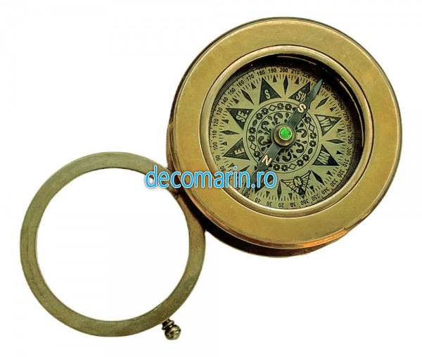 Busola din alama antichizata cu lupa plabila