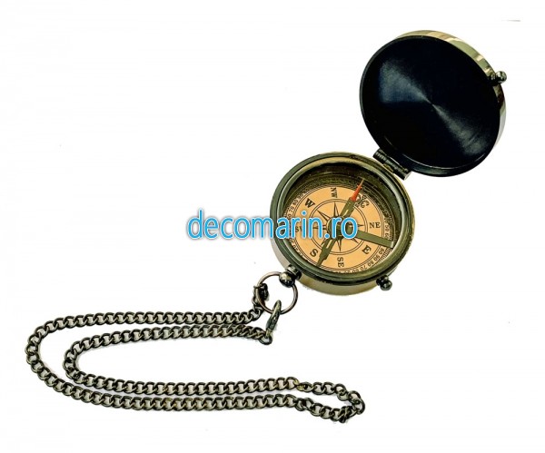 Busola din alama antichizata cu capac si lant
