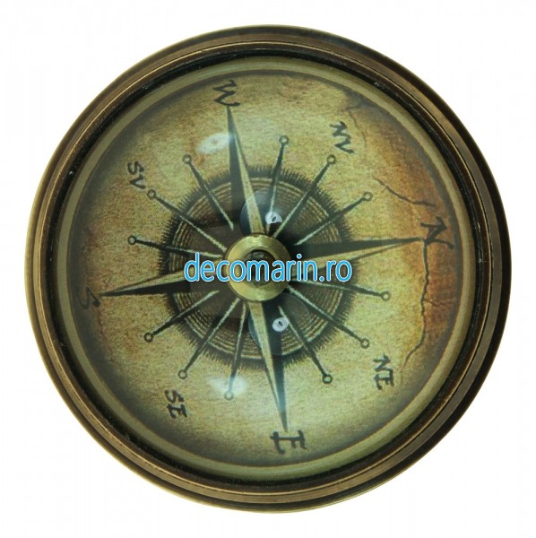 Busola din alama antichizata cu capac de sticla tip cupola.
