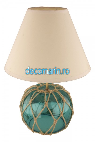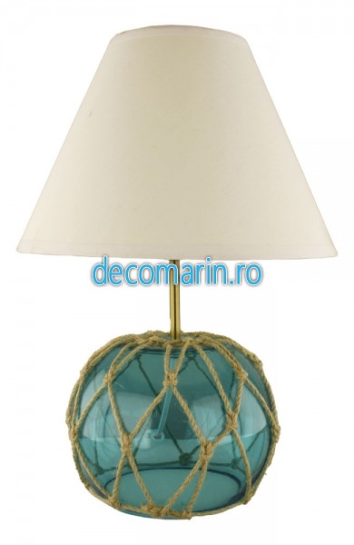 Lampa cu tema marina, baza din sticla cu abajur textil inclus