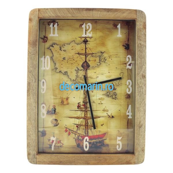 Ceas de perete cu tema marina, rama din lemn de mango, alimentare cu baterie.