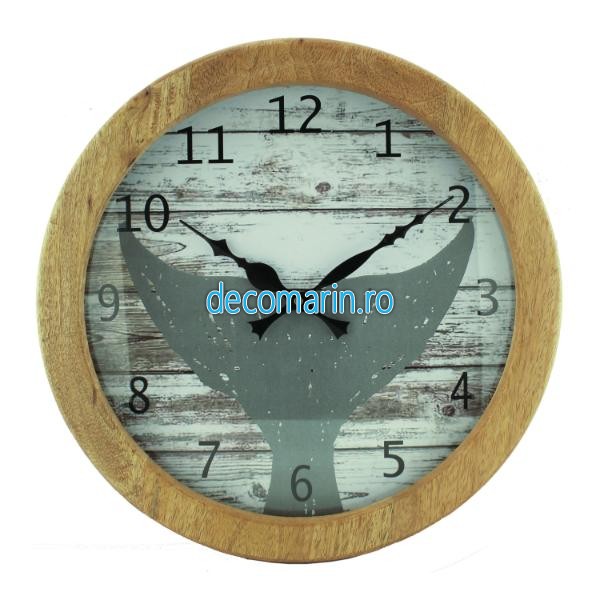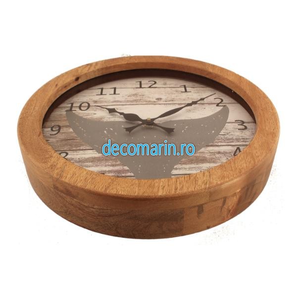 Ceas de perete cu tema marina, rama din lemn de mango, alimentare cu baterie.