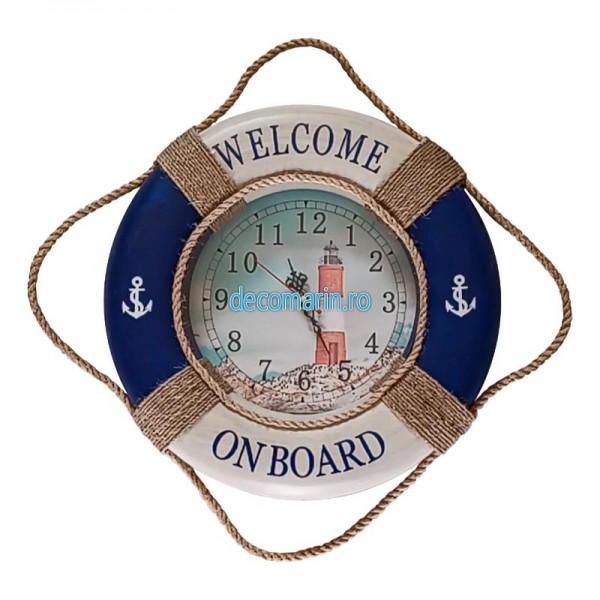 Ceas de perete in suport tip colac din compozit, alimentare cu baterie.