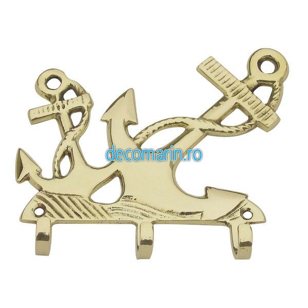 cuier mural din alama, model cu 3 agatatori tip ancora