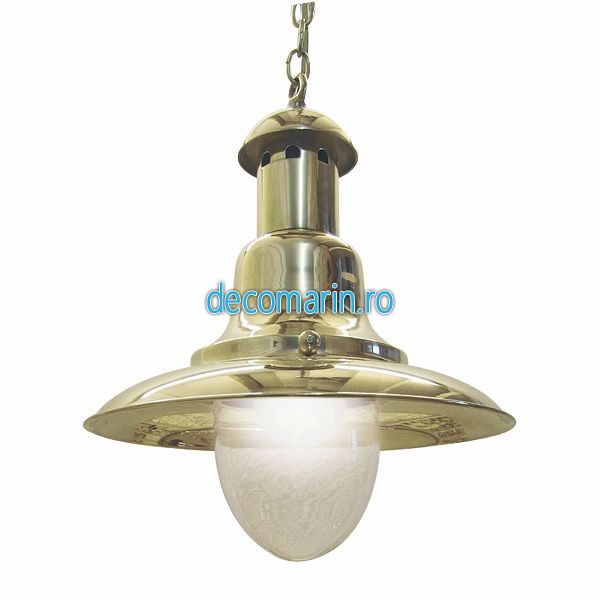 lampa de tavan electrificata din alama lustruita cu glob din sticla
