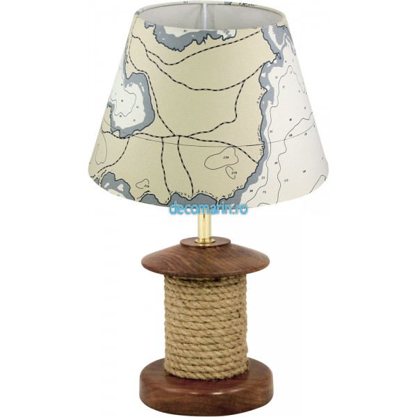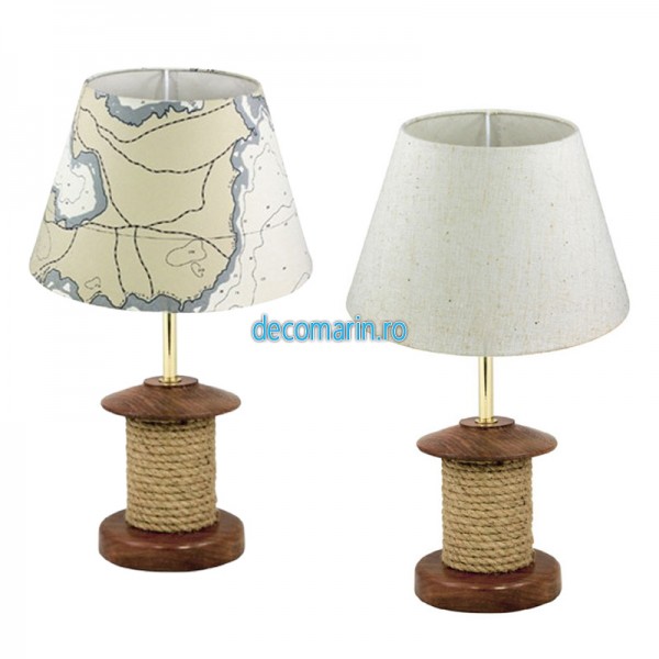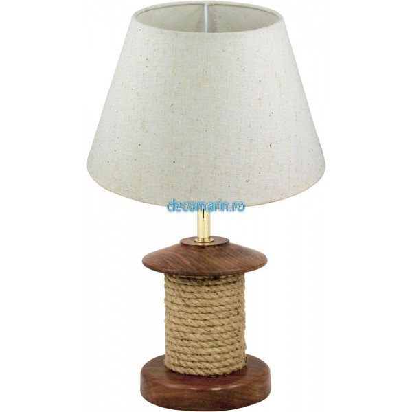 lampa de masa din lemn cu sfoara decorativa, abajur de iuta inclus,