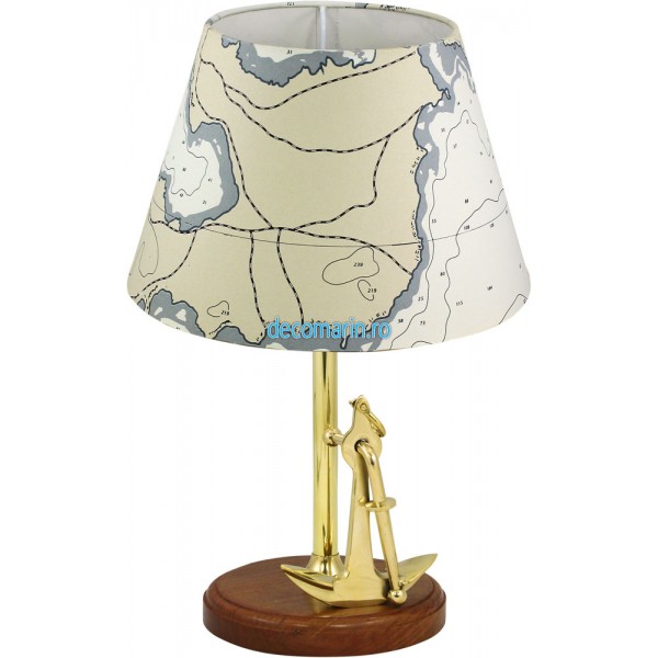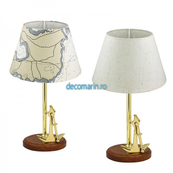 lampa cu ancora din alama si baza de lemn, abajur din iuta inclus