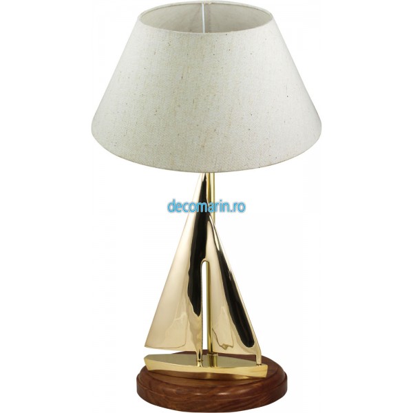 lampa cu iaht din alama ,baza de lemn si abajur din iuta inclus,