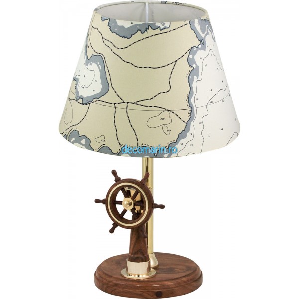 lampa cu timona decorativa din lemn si alama, ,abajur din iuta inclus