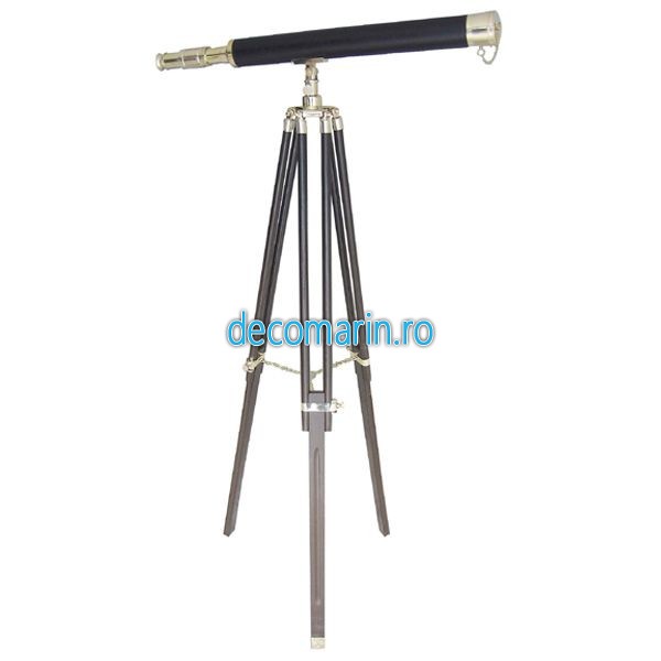 telescop din alama imbracat in piele pe suport reglabil din lemn